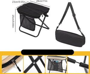 - خيارات حمل متعددة الاستخدامات: يوفر حزام الكتف أوضاع حمل متعددة الاستخدامات محمولة باليد وعبر الجسم، مما يعزز الحركة بدون استخدام اليدين ويجعل مقعد التخييم مناسبًا للعديد من البيئات الخارجية واحتياجات السفر